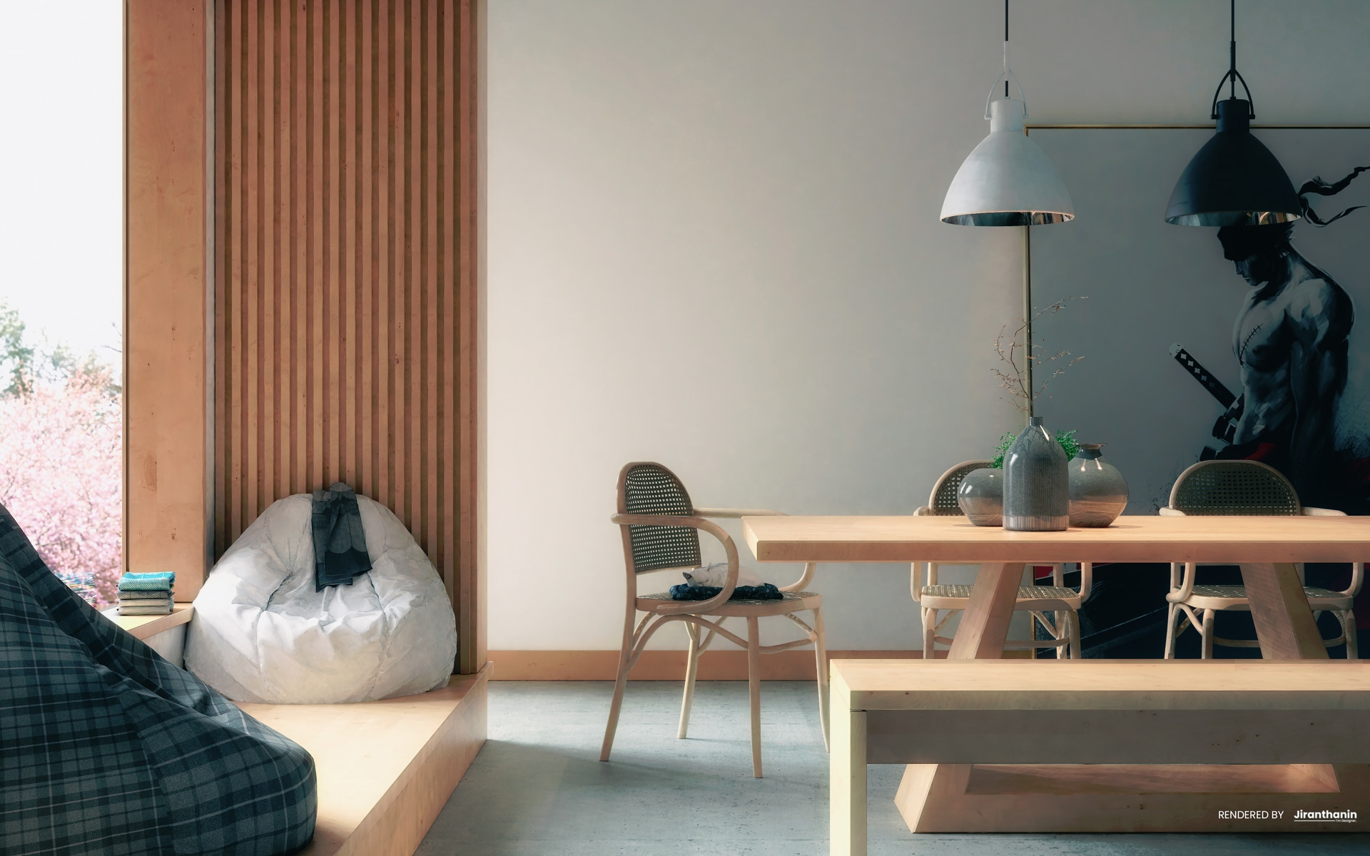 Um KeyShotXR que usa a própria câmera como um centro de articulação para capturar a visão em primeira pessoa da cena.